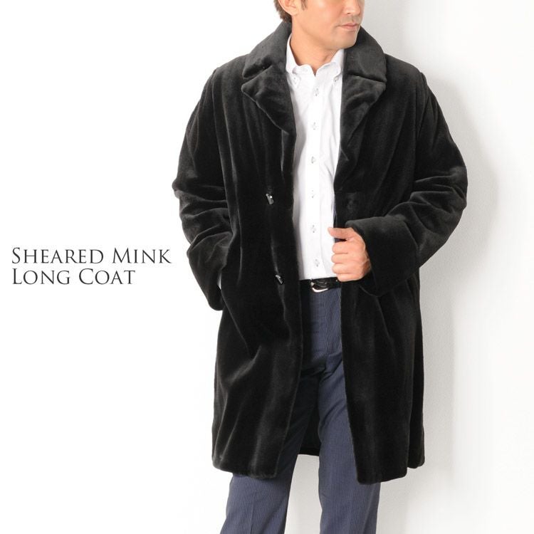 ミンク コート シェアード加工 テーラーカラー ロング 着丈98cm/メンズ 毛皮 ロングコート シェアードミンク ミンクコート ミンクジャケット 誕生日 プレゼント ギフト 父