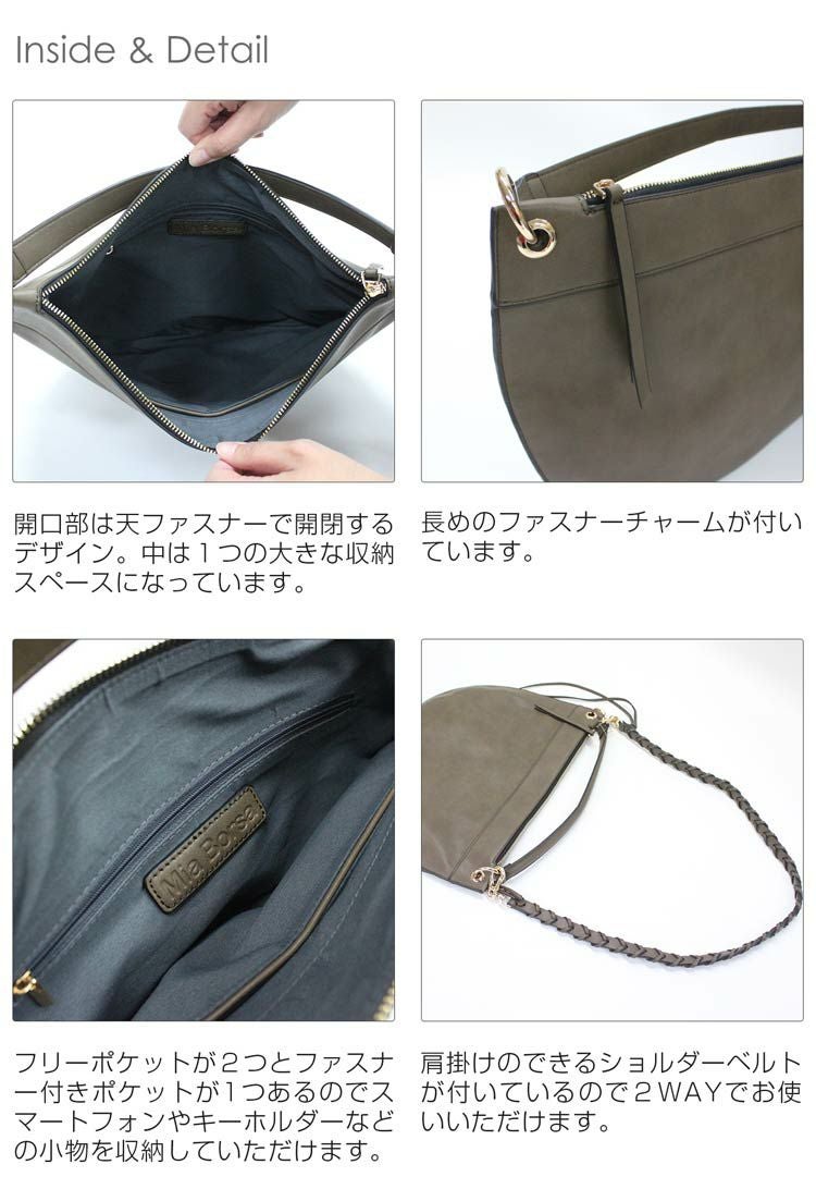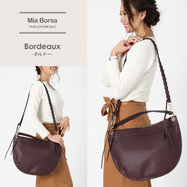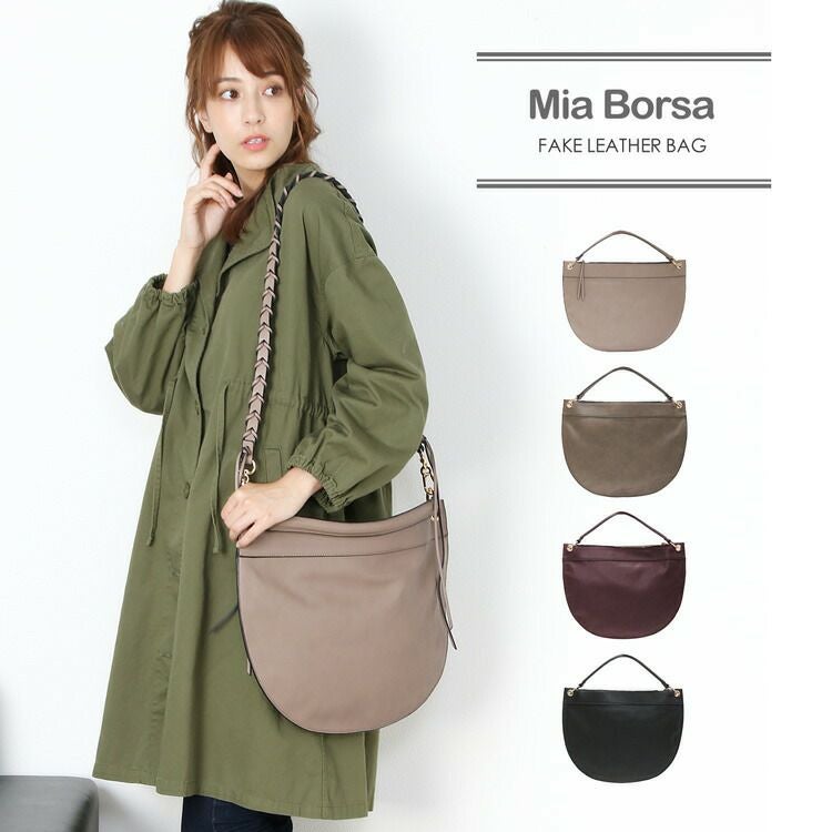 | 商品名:[Mia Borsa]フェイクレザー 半円型 ワンショルダーバッグ 2WAY / レディース |