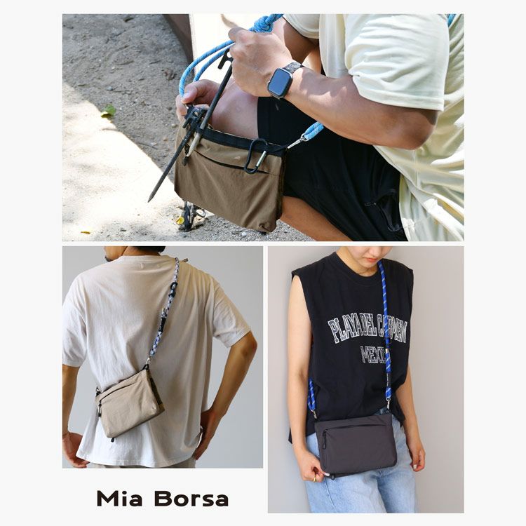 ショルダーバッグ サコッシュ レディース ナイロン 軽量 バッグ 【ネコポスで送料無料】 ナイロンバッグ アウトドア メンズ ブランド Mia Borsa 撥水 実用的 スマホ ストラップ ひも スマホショルダー ストラップホルダー ステンレス
