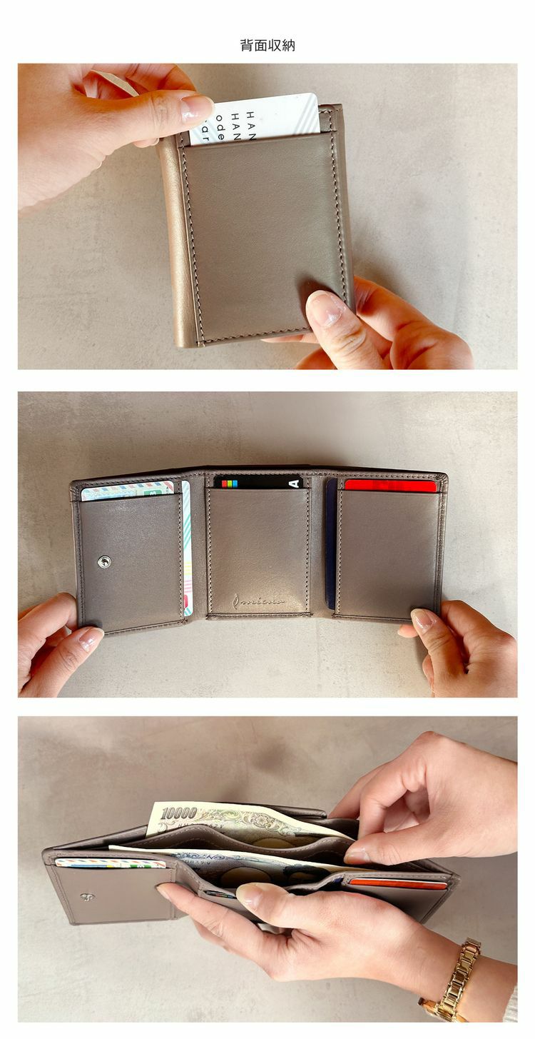 スナップボタンで開閉 BOX型の小銭入れ×1 ■外側 カードホルダー×1 ■内側 カードケース×6 2層に分かれた紙幣入れ×1