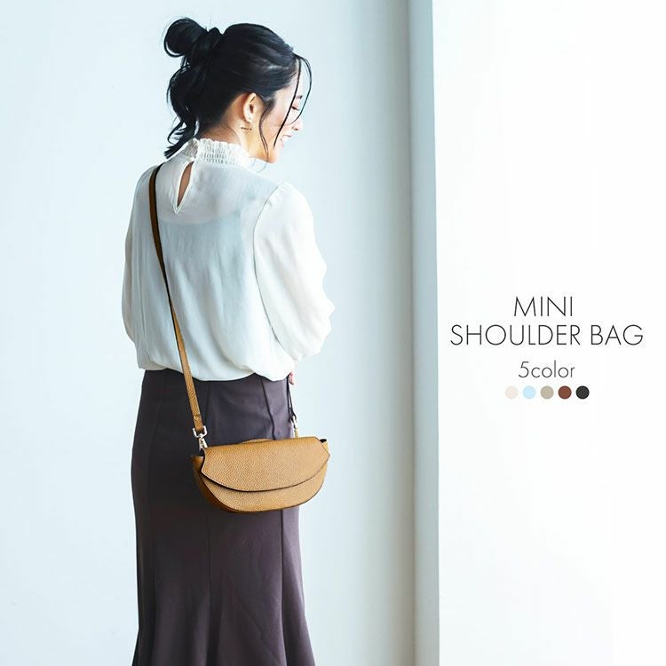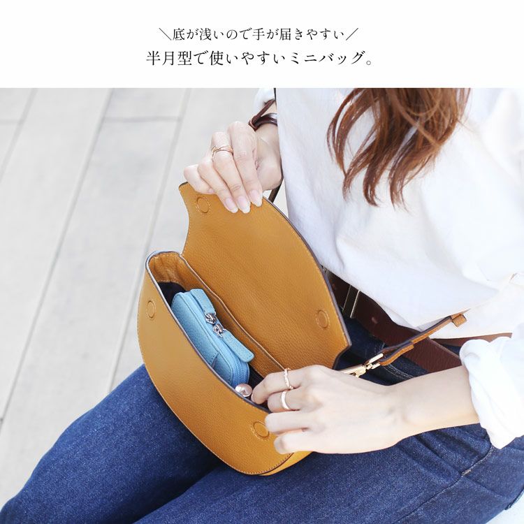 ミニバッグ ショルダーバッグ ミニ バッグ かわいい レディース 女性 mieno ブランド 小さめ かるいかばん 軽量 軽い かばん 鞄 ショルダー 本革 キャメル ブラック ブルー 青 茶色 黒 使いやすい 横長 半月 牛革 ミニショルダーバッグ ギフト プレゼント F5 (07000564r)