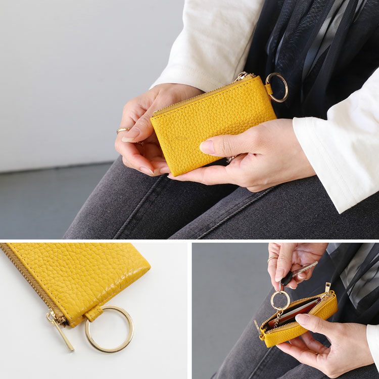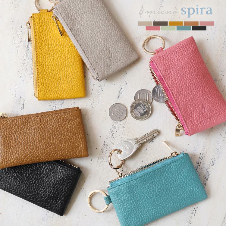 薄型デザインのキーケース。 家の鍵はもちろん、小銭・折り畳んだ紙幣などの現金、クレジットカードも収納可能です。 手軽に使える革製品を提案するブランドmieno、 素材にこだわる大人のためのシリーズ。 見た目も使い心地もワンランク上がった spira(スピラ)レザーをぜひお楽しみください。 リング付きだからスマホショルダーやバッグの付けたり アクセサリー感覚でお使い頂けます。 ふっくらとした立体的な表情が特徴のスピラレザー。 優しく手に馴染む柔らかな質感の牛革です。 思わず目を惹く美しい発色と上品な艶があります。