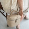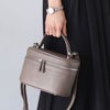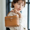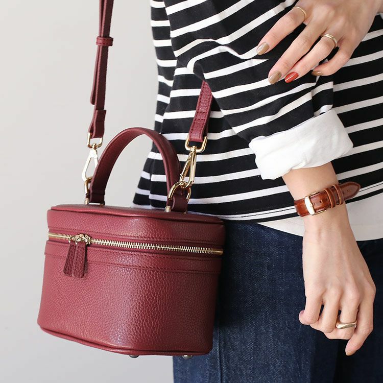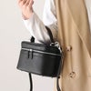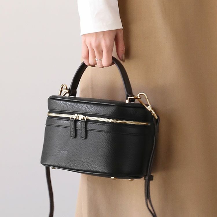 コロンとしたボックス型のデザインが可愛らしいバニティバッグ。