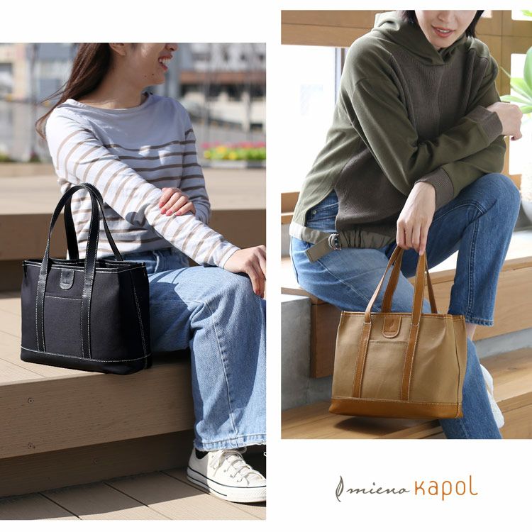 仕切り トートバッグ レディース ミニトート バッグ 小さめ 軽量 mieno ファスナー付き 収納 キャンバス 帆布 牛革 レザー 小さいバッグ ランチバッグ マザーズバッグ 可愛い b5 自立 マチ広 通勤 ギフト プレゼント