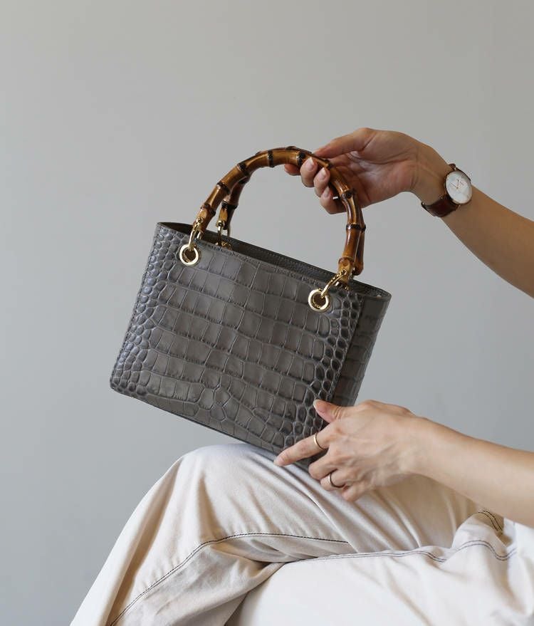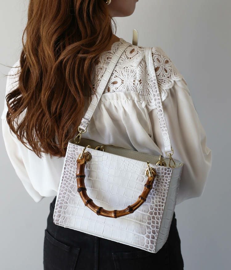 バッグ レディース 2way 斜め掛け バンブー ハンドル 牛革 クロコダイル 型押し ブランド mieno イタリアンレザー 本革 高級感 レザーバッグ ハンドバッグ ショルダーバッグ 大人 フォーマル ギフト お出かけ 旅行 プレゼント お出かけ