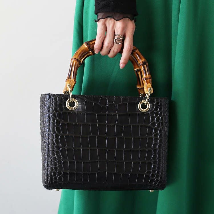 5. バッグ レディース 2way 斜め掛け バンブー ハンドル 牛革 クロコダイル 型押し mieno イタリアンレザー 4FB (07000681r)