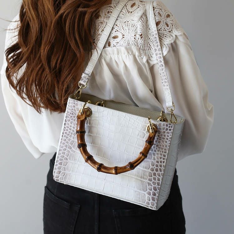 ※キーワード:バッグ レディース 2way 斜め掛け バンブー ハンドル 牛革 クロコダイル 型押し ブランド mieno イタリアンレザー 本革 高級感 レザーバッグ ハンドバッグ ショルダーバッグ 大人 フォーマル ギフト お出かけ 旅行 プレゼント お出かけ