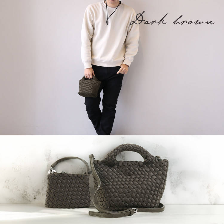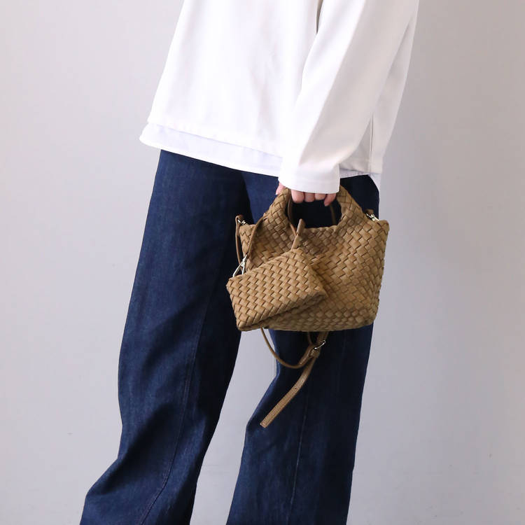 ちょっとした外出やランチ、散歩などのワンマイル使いに最適。底板入りで自立するため中身の出し入れがラク。付属のポーチで小物整理もスムーズに行えます。