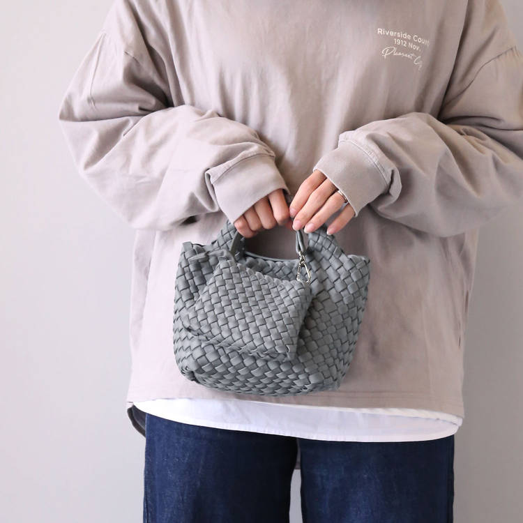 通気感のあるナイロンメッシュ素材を採用し、見た目も手触りも軽やかな印象に。さらさらとしたタッチで扱いやすく、デイリーに気軽に使える素材感です。