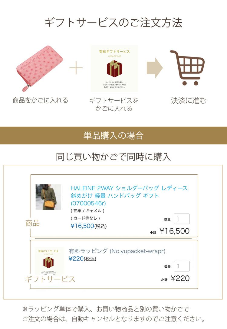 ※商品ページ内に【ラッピング対象外】と表示されている商品はラッピングサービスの承ることができません。