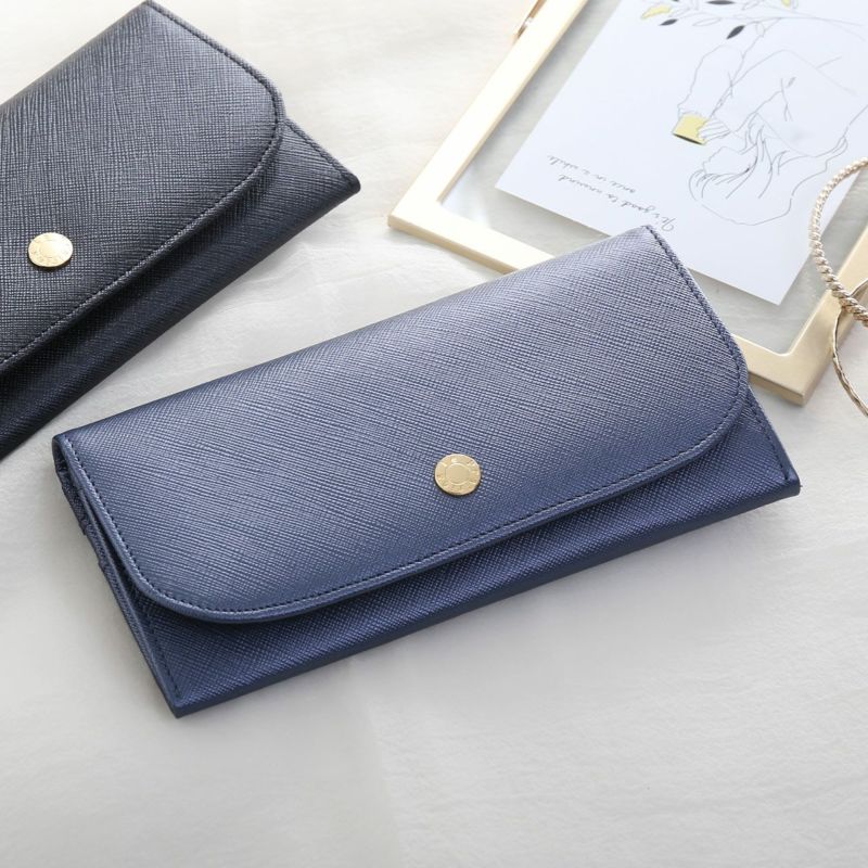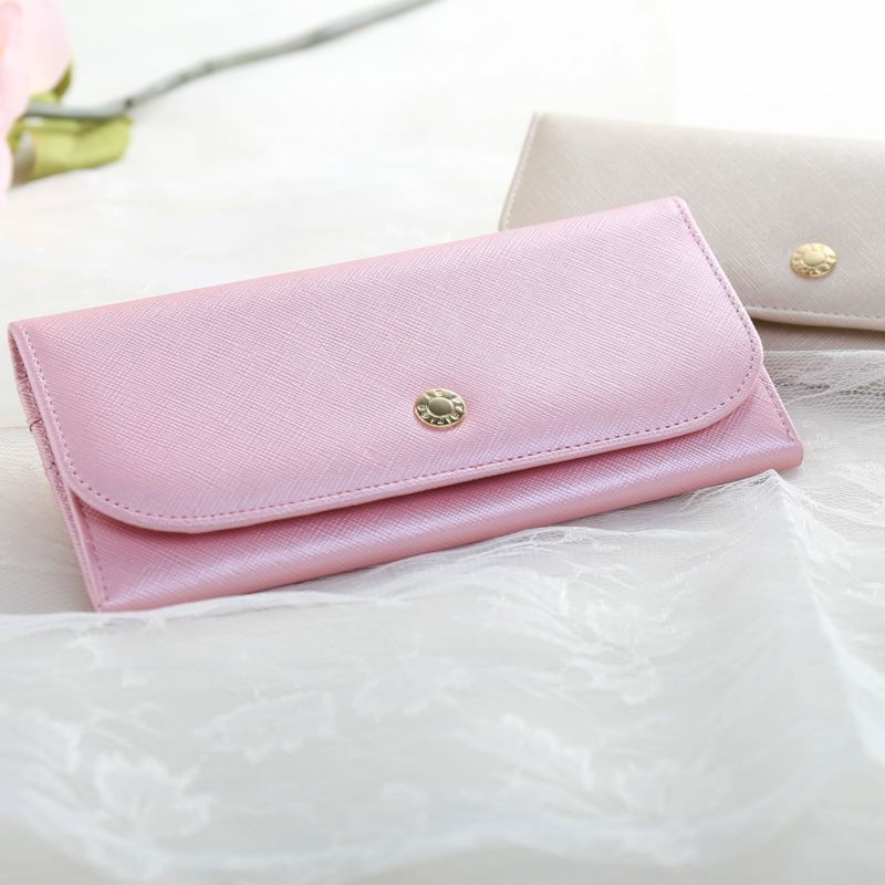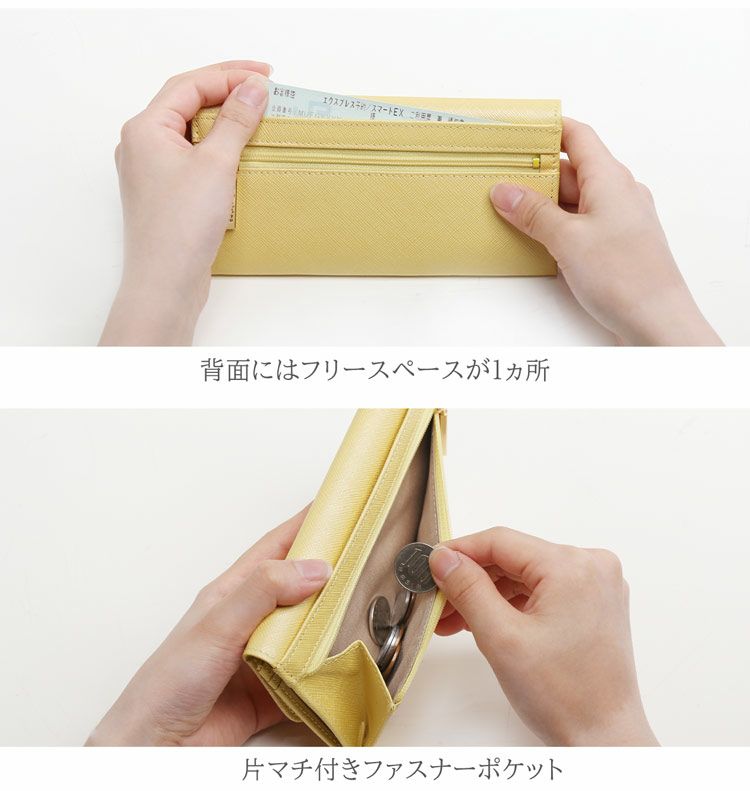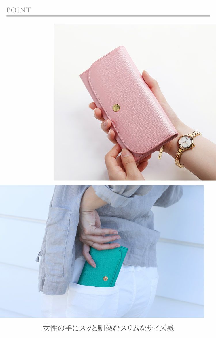女性の手に馴染むように設計されたスリムなかぶせ長財布。