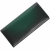手に馴染む柔らかな触り心地。 美しいグラデーションが手元をオシャレに飾ります。 薄型なのでジャケットの内ポケットにもスッと入ります。 表革には日本職人の手作業によるシャドー加工を施した革を用いています。 型抜きした革1枚1枚に職人の手作業でエアーブラシによって吹き付けを施しています。 端から中央へ滑らかな濃淡を出していく作業は、職人の経験と技術のなせる業です。 硬く見えるデザインですが、使用している牛革はソフトで滑らかな手触りの牛革を使用。 思わず触れたくなる手触りと美しいグラデーションが魅力の財布です。 内装にMADE IN JAPANの文字が刻印されています。 日本製品の魅力として第一に挙げられるのが「作りの良さ」です。 日本特有の細やかで正確な作業は、 海外の職人には真似る事のできない日本が誇る伝統的な技術の一つです。 また、この緻密で正確な隙の少ない作りにより製品の耐久性が高く、 長く使えるというメリットがあり、世界中から日本製品はリスペクトされています。 内側の革は全色共通で落ち着いた印象のブラックカラーで統一。 収納スペースはシンプルで使い易い、オーソドックスな作りに仕上げています。 カードホルダーは充実の12か所。 紙幣入れは中央のファスナー付き小銭入れが仕切りとなり、2層に分かれています。 ワイドポケットは内側に1か所、外側背面にも一か所あります。 専用の箱に入れてお届けします。 プレゼントにもおすすめのアイテムです。 背面の切替部分の革は全色共通、ブラックカラーの牛革を使用しています。