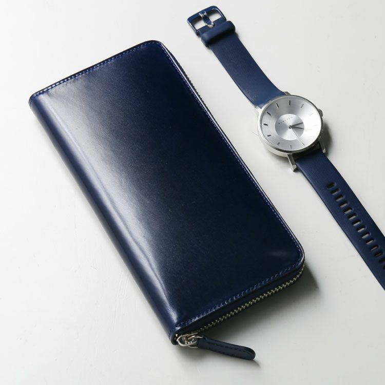 無駄な装飾の無いシンプルなデザインで、コードバンの素材感が生きた長財布です。