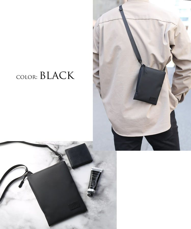 落ち着いたシンプルなデザインであらゆるコーディネイトに合わせられる万能なサコッシュ。