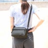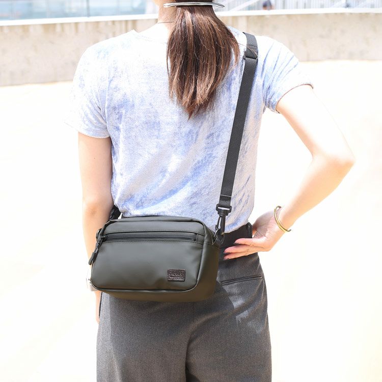 落ち着いたシンプルなデザインであらゆるコーディネイトに合わせられる万能なボディバッグ。