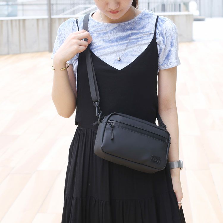 レザー部分は防水レザー、ファスナーには止水ファスナーを採用した、雨に強いボディバッグです。