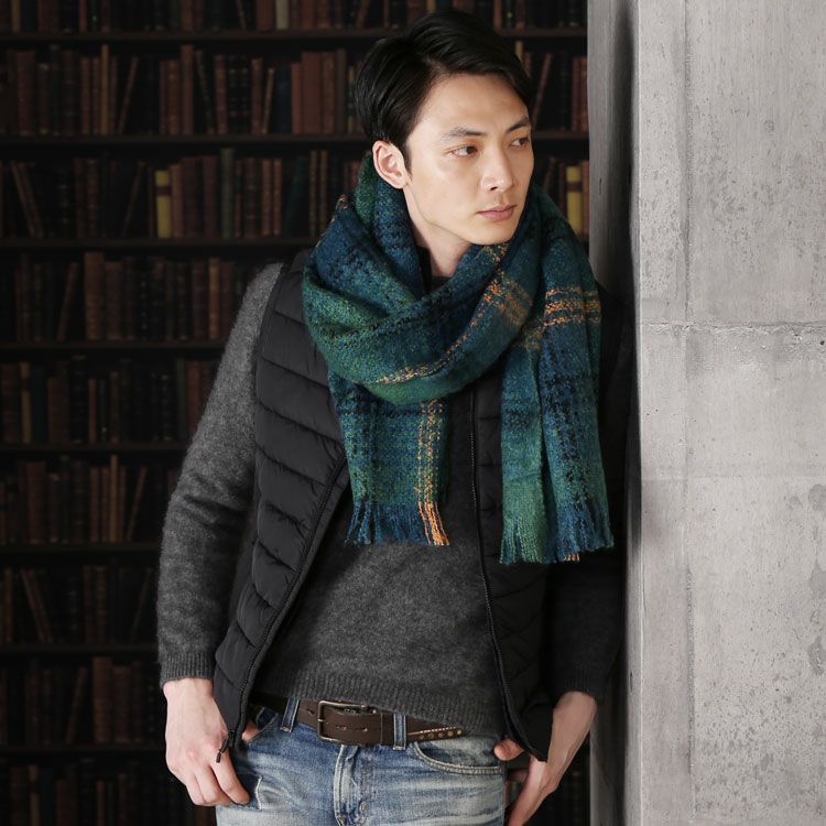 大判 ストール チェック柄 メンズ 厚手 7F