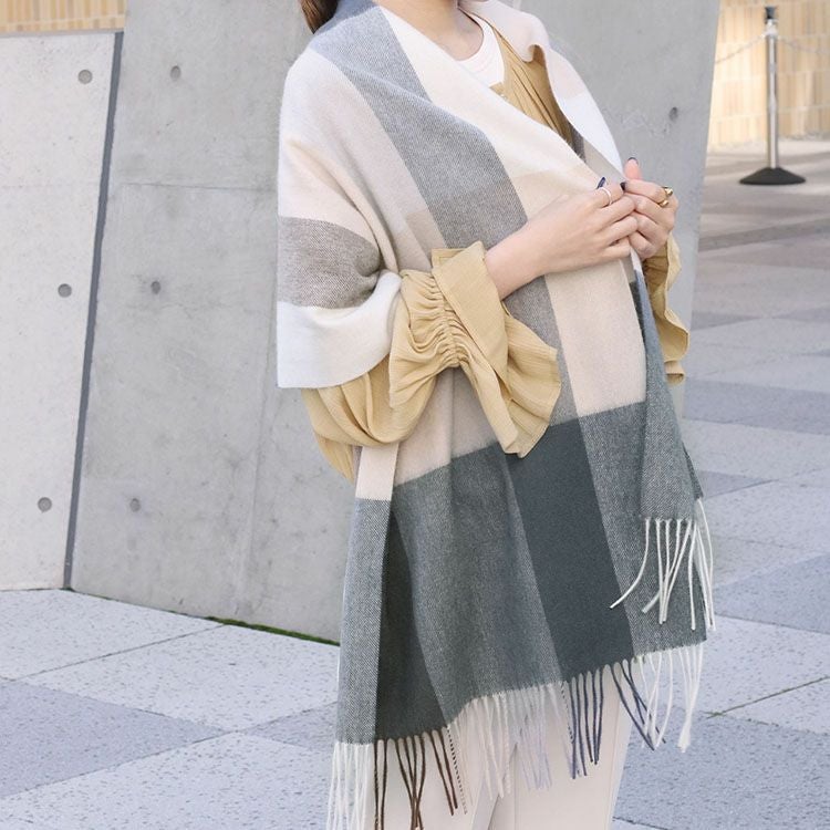 ※キーワード: カシミヤ混 ウール ユニセックス チェック 大判 ストール 秋 冬 春 チェック柄 厚手 あたたかい シンプル 普段使い ビジネス 30代 40代 50代 60代 ファッション ギフト プレゼント クリスマス 誕生日 バレンタイン