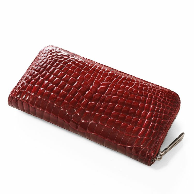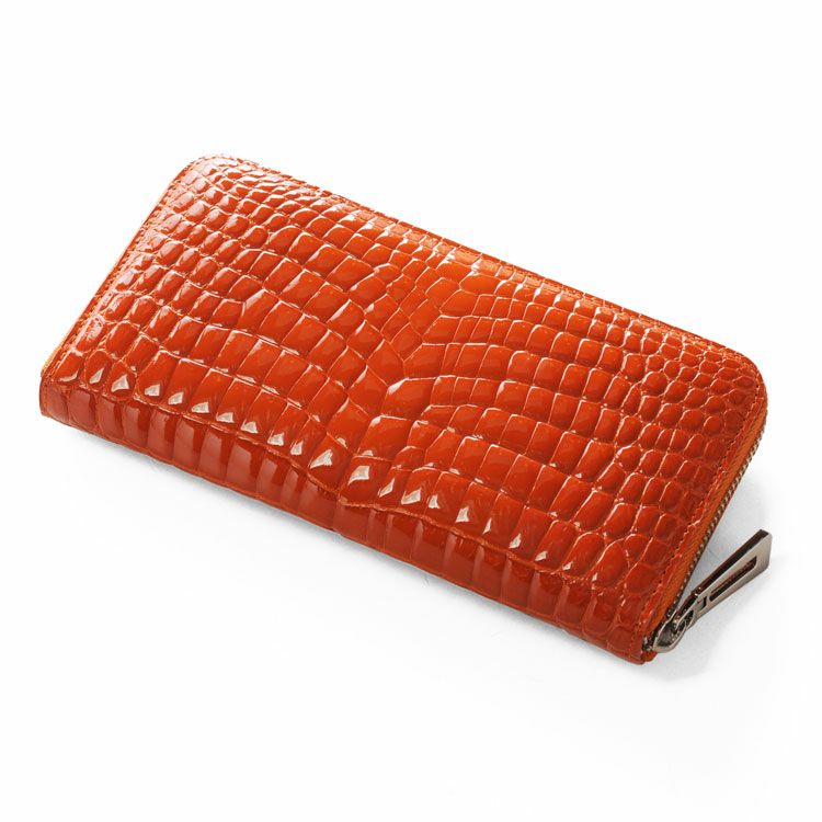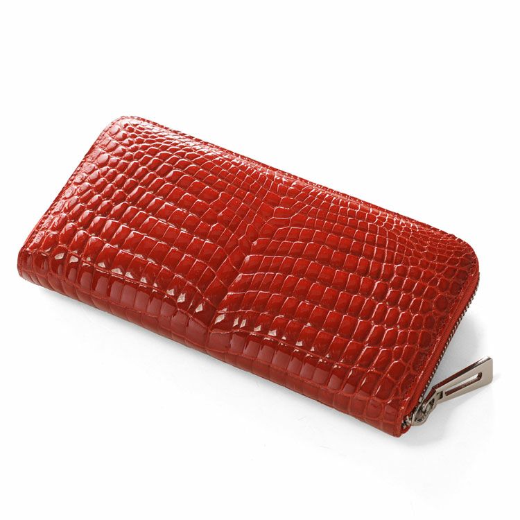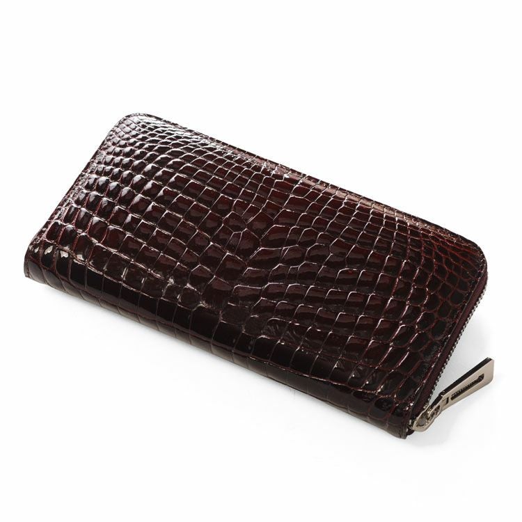 | 商品名:クロコダイル 長財布 シャイニング加工 センター取り 一枚革 メタルファスナー / レディース |