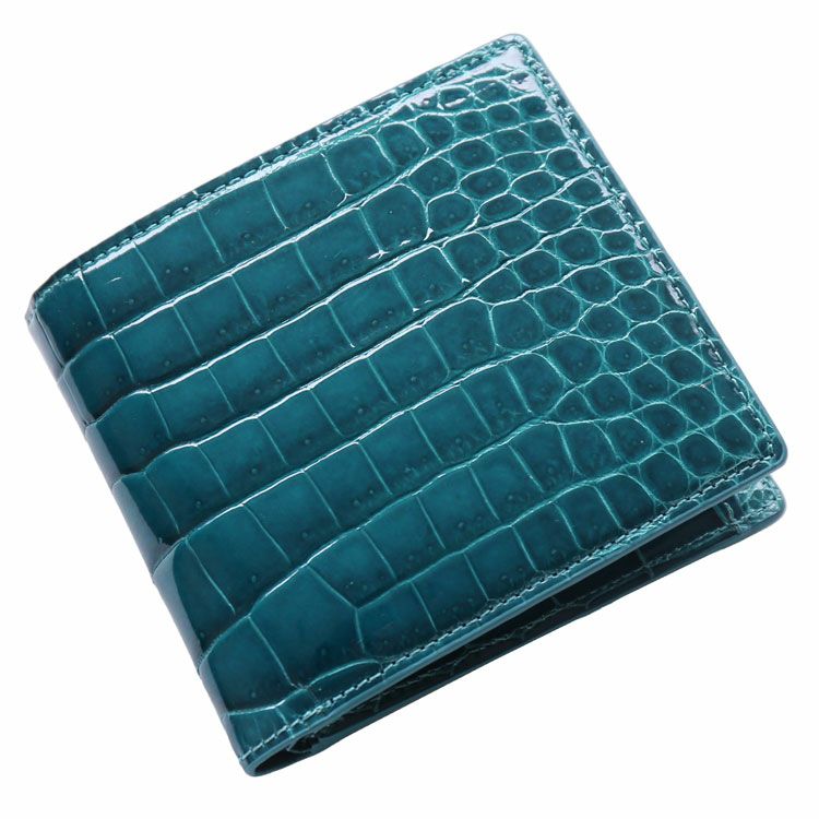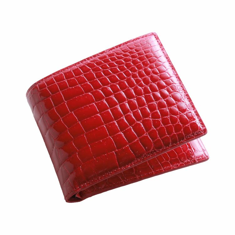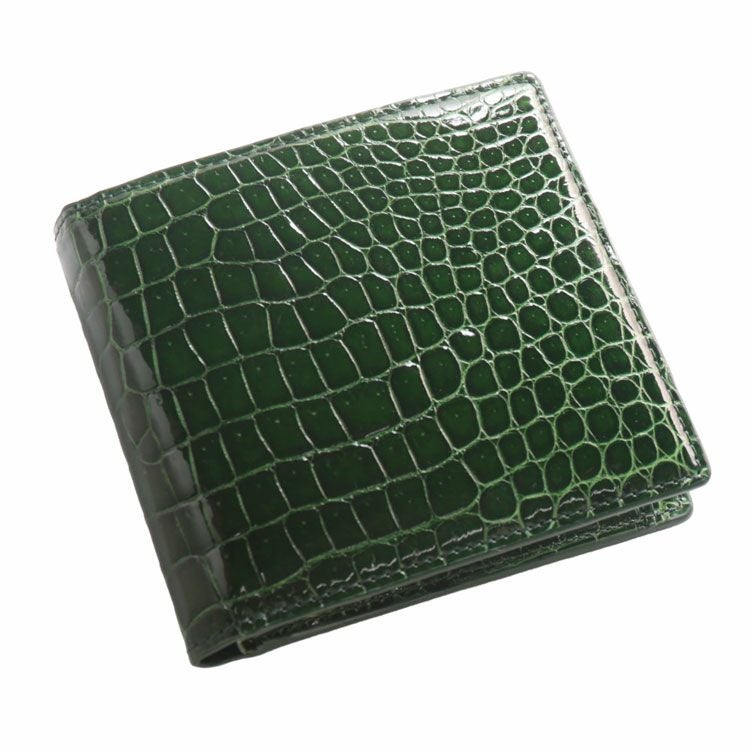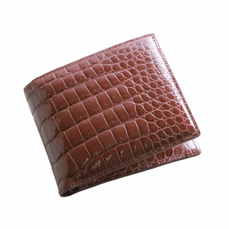 スモールクロコダイルで仕立てた二つ折り財布です。