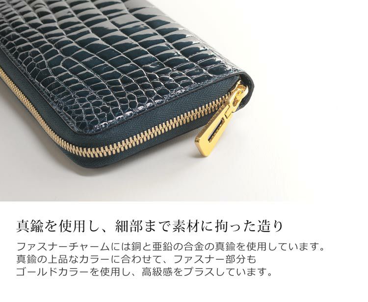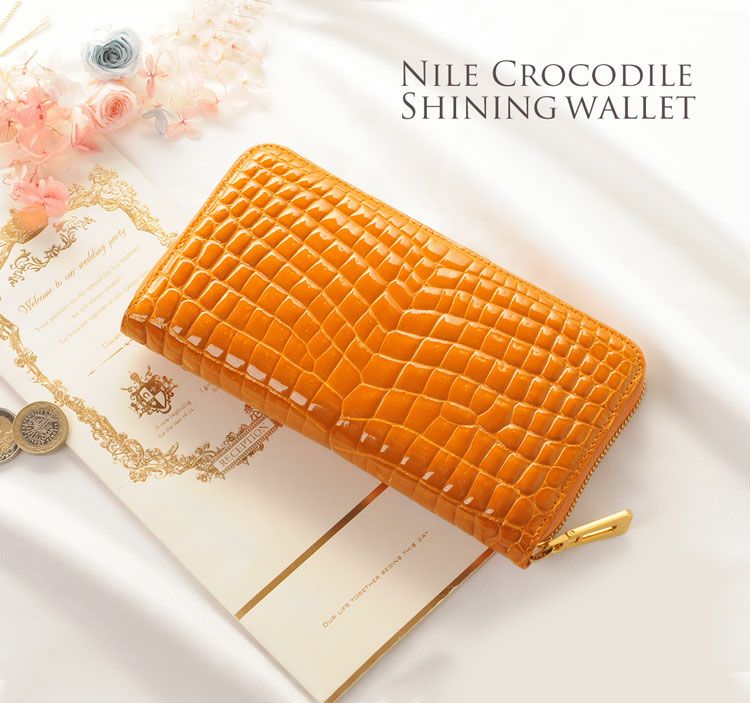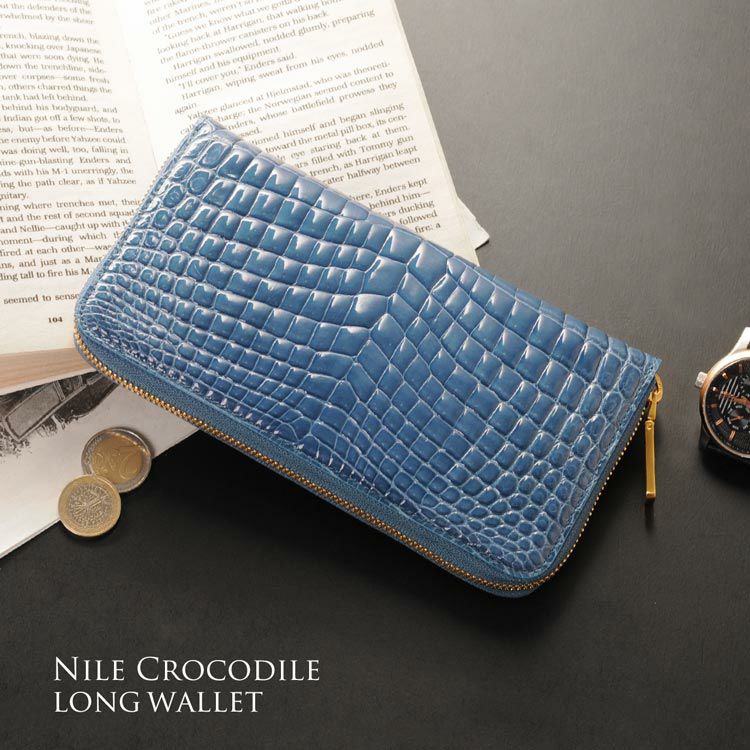 ナイルクロコダイルを使用したラウンドファスナー長財布。