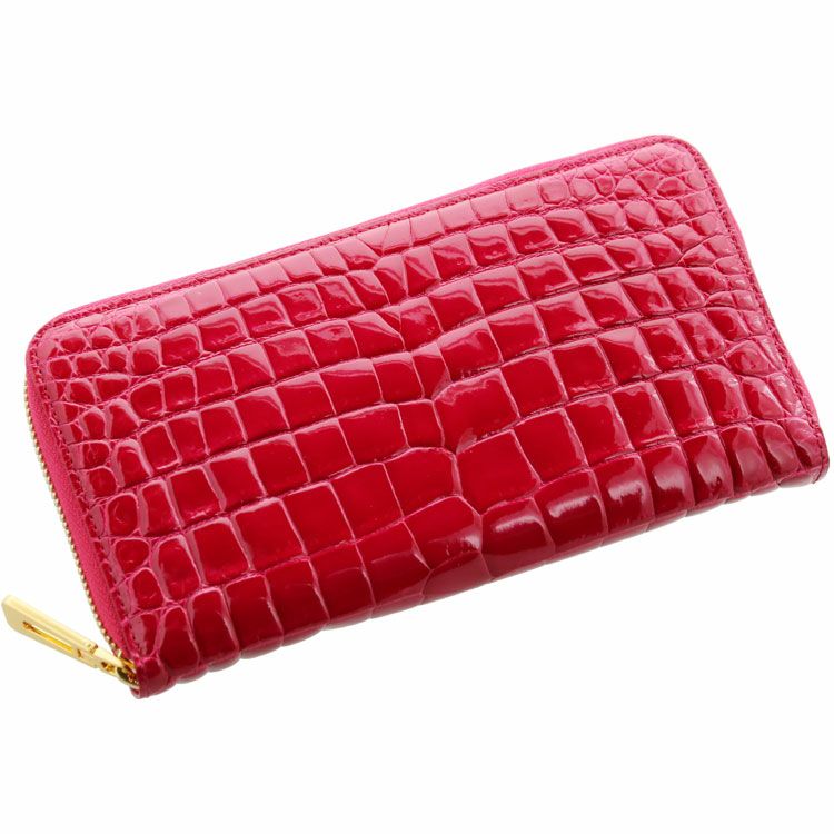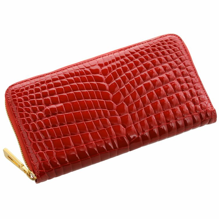 商品名:クロコダイル 長財布 シャイニング 加工 一枚革 センター取り レディース ヘンローン 真鍮 チャーム