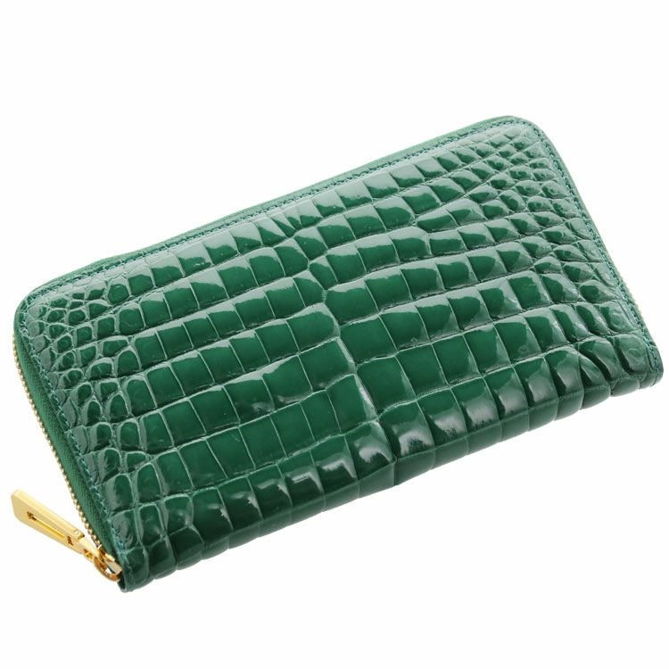 クロコダイル 長財布 シャイニング 加工 一枚革 センター取り レディース 真鍮 チャーム 全20色 『クロコダイル保証書付き』 4FA