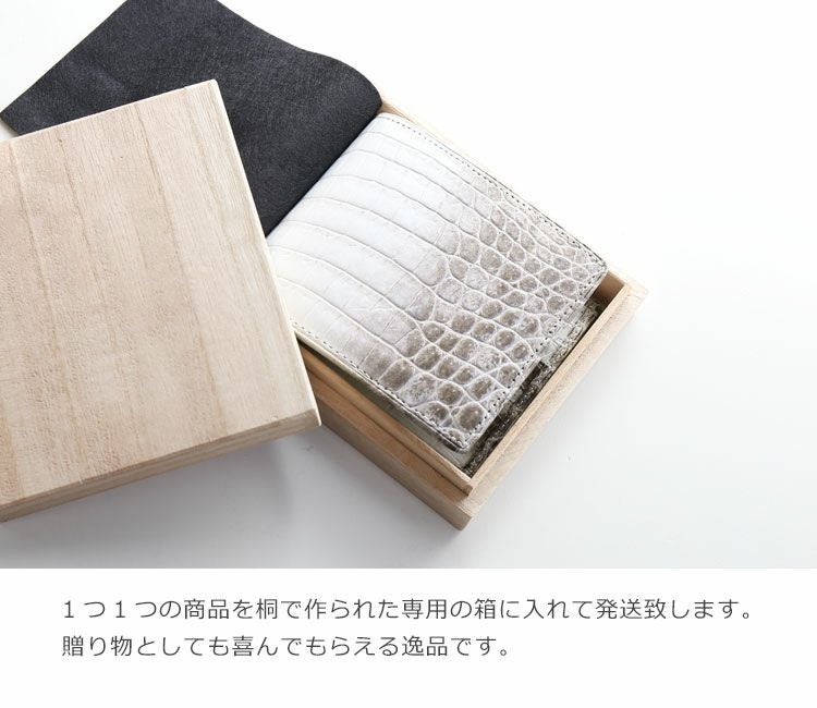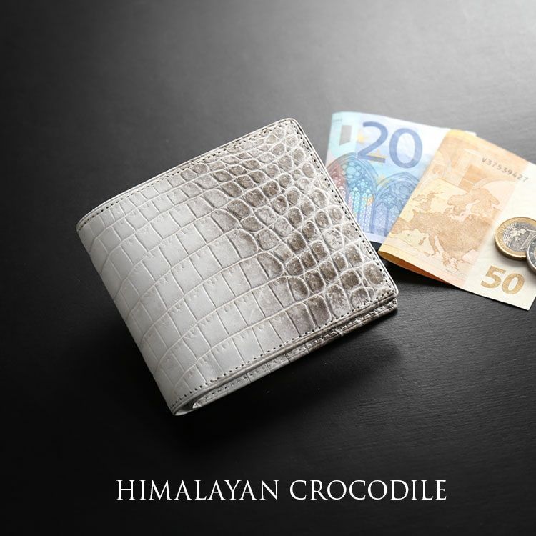 天然皮革 エキゾチックレザー ヒマラヤ クロコダイル 二つ折り 財布 メンズ 薄い 日本製 無双 一枚革 センター取り マット 加工 小銭入れ付き 小銭入れ無し メンズ財布 カード札入れ 本革 鰐革 革 プレゼント ギフト