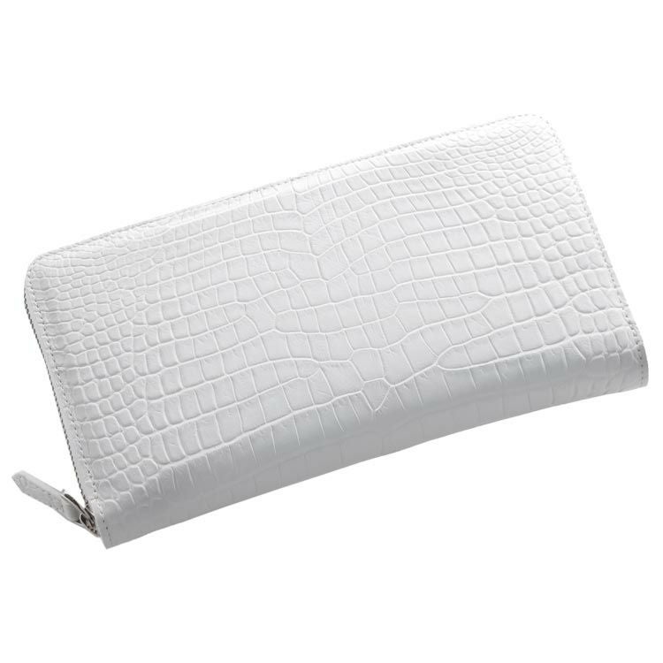 スモールクロコダイルで仕立てた大きめラウンドファスナー長財布。