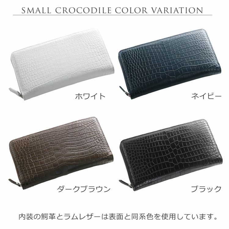 天然皮革 エキゾチックレザー スモール クロコダイル メンズ 長財布 マット 加工 手帳型 センター取り 一枚革 内装鰐革 ポロサス ラウンドファスナー ホワイト/ネイビー/ダークブラウン/ブラック 本革 プレゼント 保証書 付き ギフト 普段使い ギフト