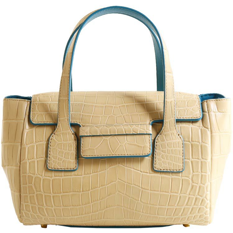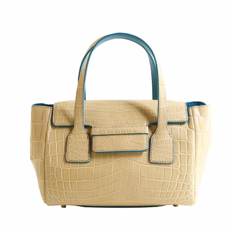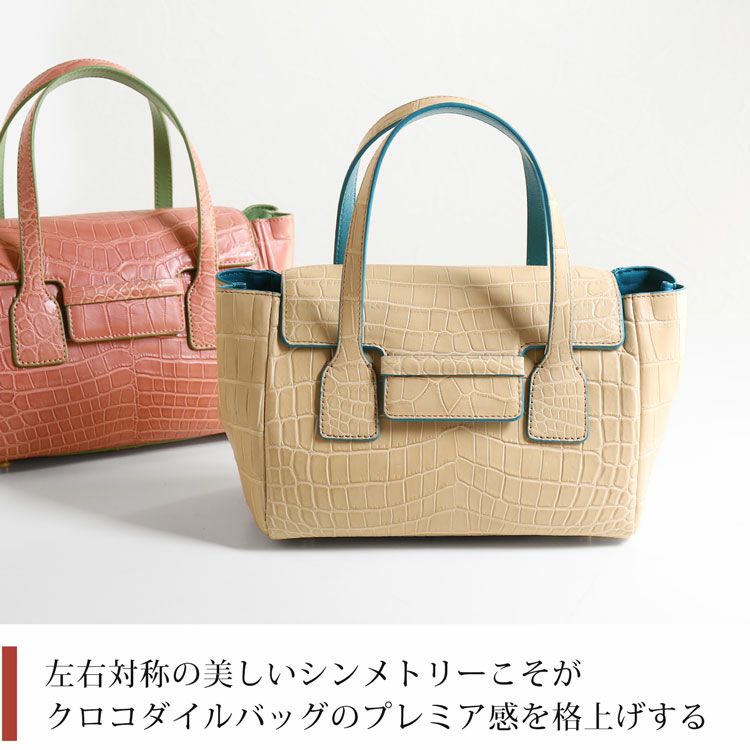 女性の手元にピッタリなコンパクトなサイズ感のクロコダイルハンドバッグ。
