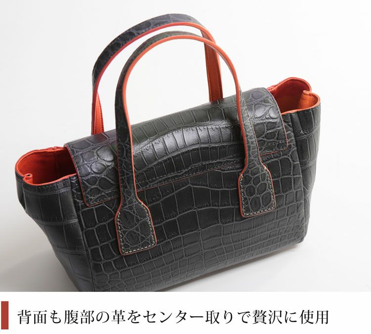 バッグの背面までクロコダイルの腹部の革をセンター取りで使用しています。