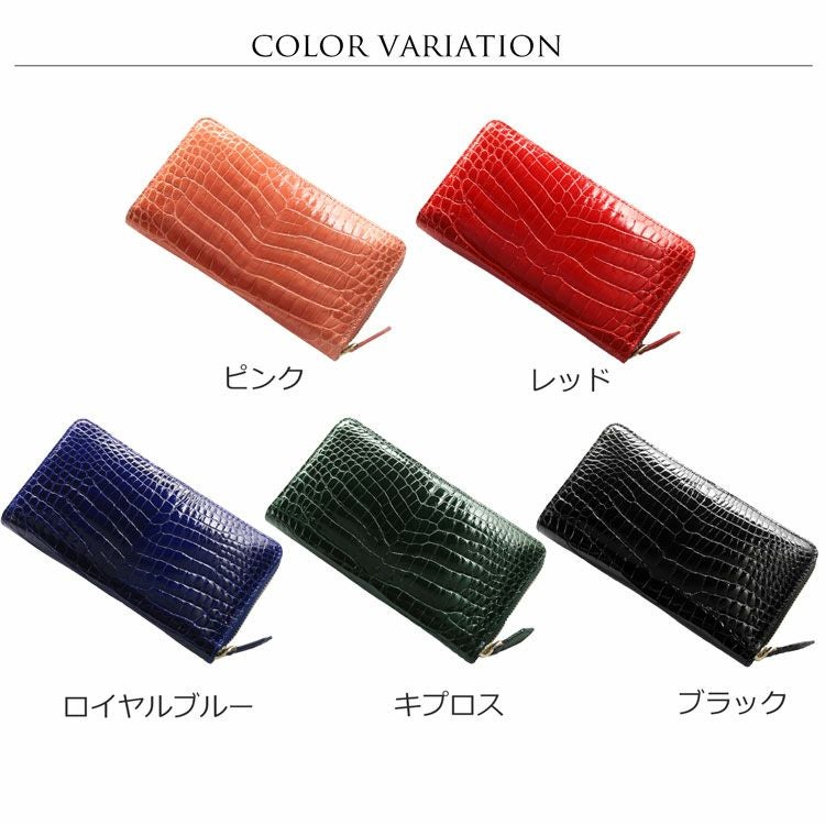 天然皮革 エキゾチックレザー クロコダイル 長財布 ラウンドファスナー レディース センター取り 一枚革 シャイニング 加工 ゴールド金具 全5色 婦人 財布 本革 鰐革 プレゼント ギフト
