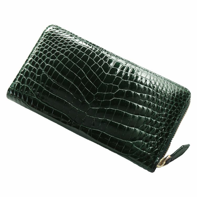 2. クロコダイル 長財布 ラウンドファスナー レディース センター取り 一枚革 シャイニング 4FA