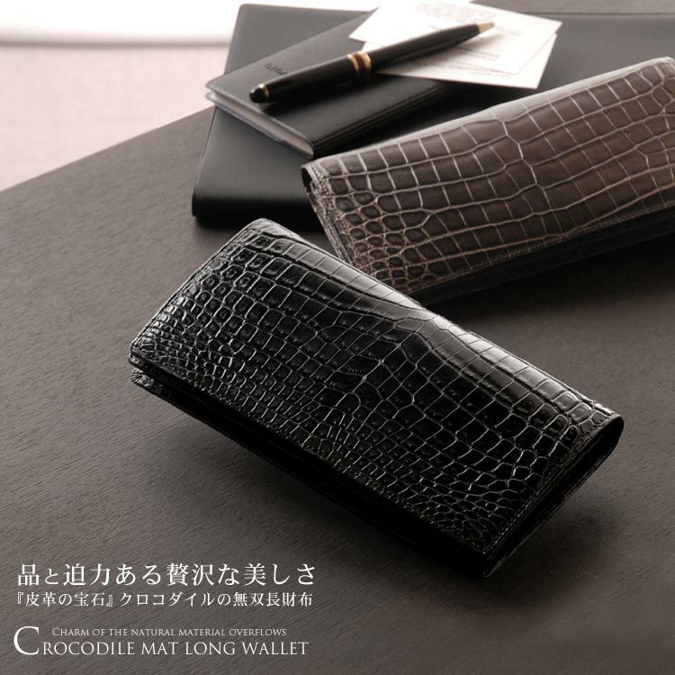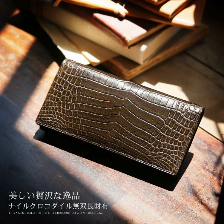 | 商品名:ナイル クロコダイル 無双 メンズ 長財布 マット 加工 センター取り / 一枚革 / 日本製 / 束入れ |