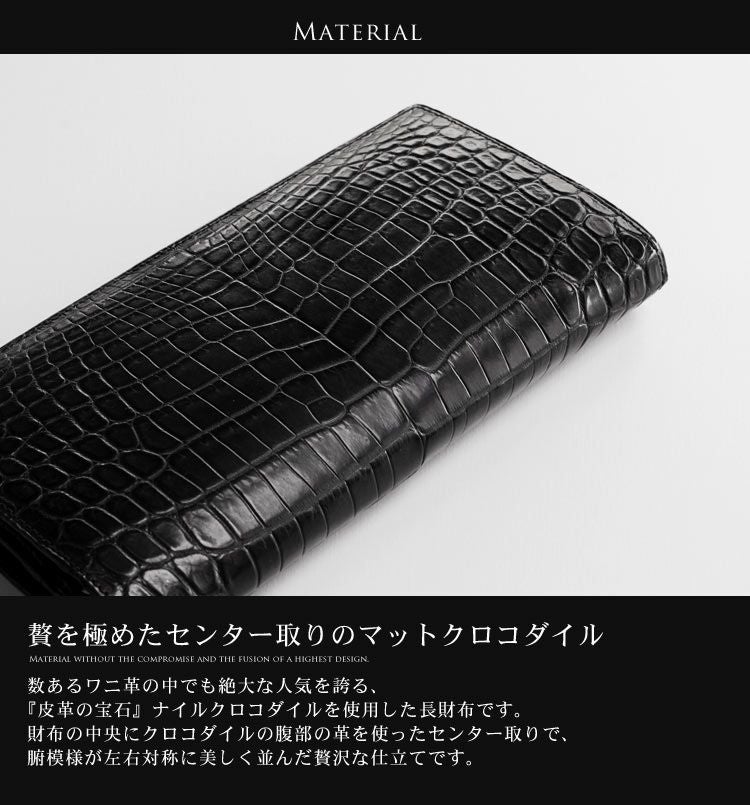 ナイル クロコダイル メンズ 長財布 無双 マット 加工 センター取り / 一枚革 / 日本製 / 束入れ