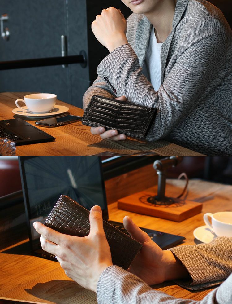 ナイルクロコダイルを使用したメンズ長財布です。