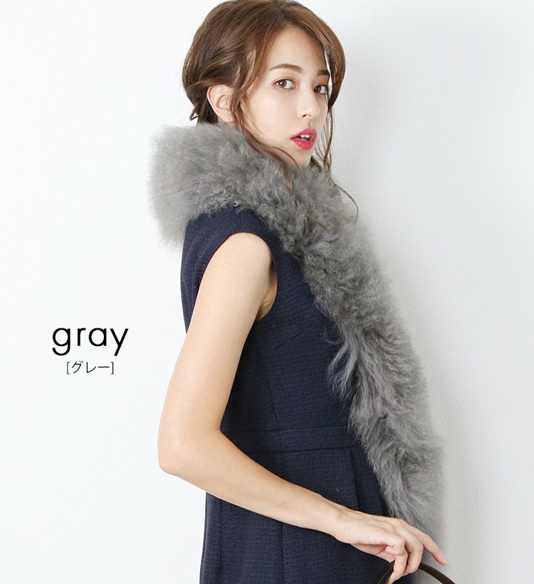 ラム ファー マフラー レディース 毛皮 ベージュ/グレー/ダークブラウン/ブラック 7F