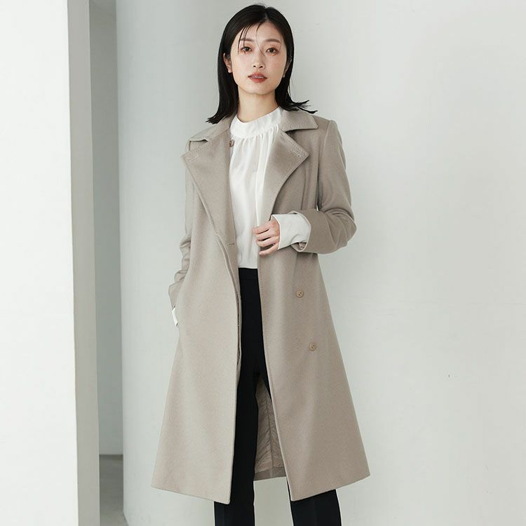 上品で大人っぽいきれいめデザインのカシミヤロングコート。