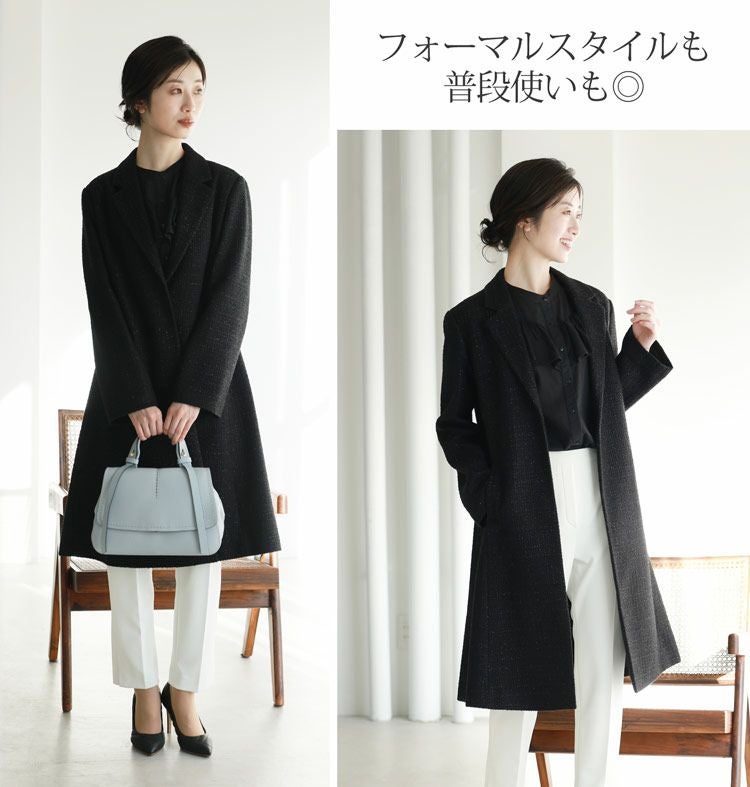 チェスター コート 春 レディース ラメ ツイード ブラック 黒 テーラーカラー ママ 母 結婚式 卒園式 卒業式 入園式 入学式 冬 30代 40代 50代 スプリングコート 華やか ウール混 ウールコート きれいめ ギフト プレゼント