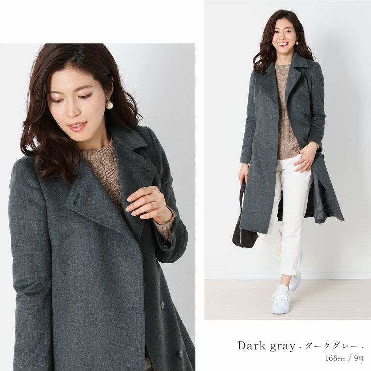 上品で大人っぽいきれいめデザインのカシミヤロングコート。