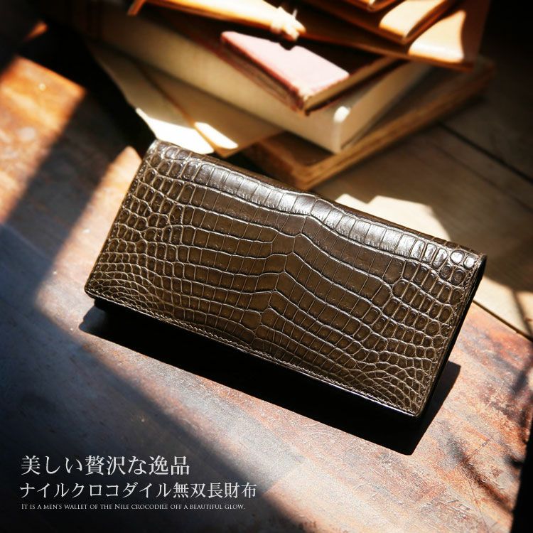 他の画像を見る exotic leather クロコダイル 無双 メンズ 長財布 シャイニング 加工 センター取り 一枚革 日本製 束入れ 全11色 ¥ 107,800 税込 4.30 (10件) お気に入りに登録する