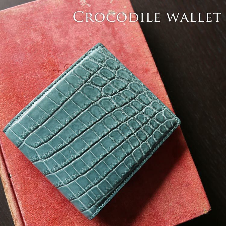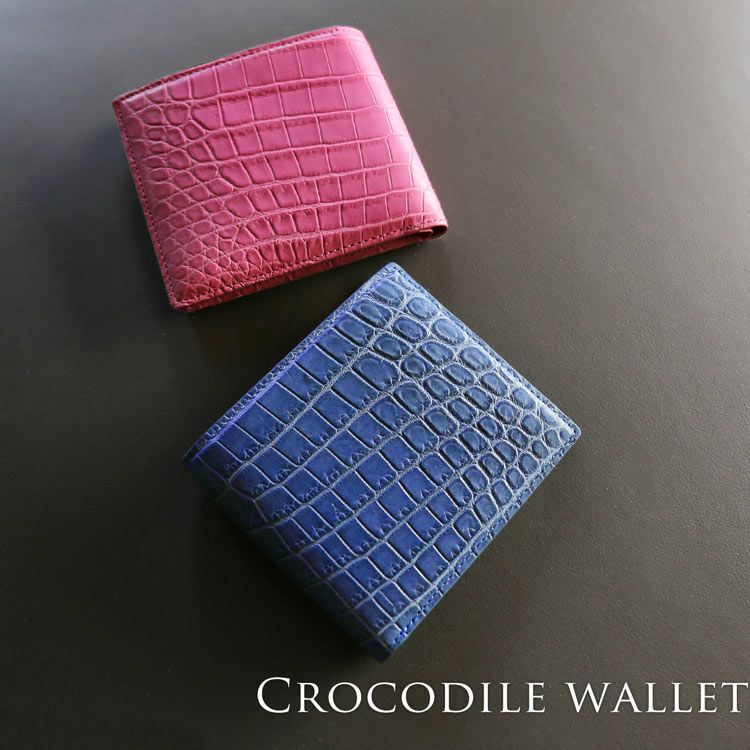 天然皮革 エキゾチックレザー クロコダイル 折り財布 小銭入れなし 本革 革 マット加工 無双 一枚革 薄い ヘンローン レディース ワニ革 ヘンローン社製 二つ折り 財布 紙幣入れ 札入れ コンパクト プレゼント ギフト