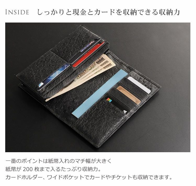 天然皮革 エキゾチックレザー 日本製 紙幣200枚収納可の オーストリッチ 束入れ 5cmマチ 無双 フルポイント 財布 メンズ 長財布 本革 紳士 男性用 紙幣入れ 札束入れ 本革財布 誕生日 プレゼント ギフト 普段使い 父 ギフト