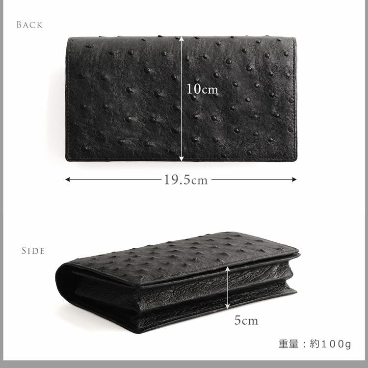 【紙幣200枚収納可】日本製 オーストリッチ 束入れ 5cmマチ / 無双 フルポイント 4FA