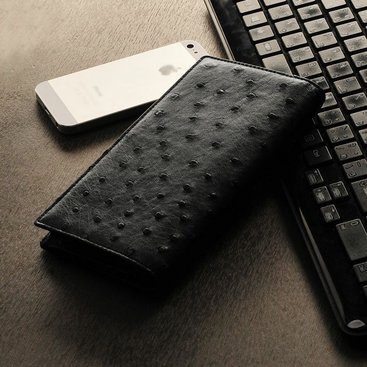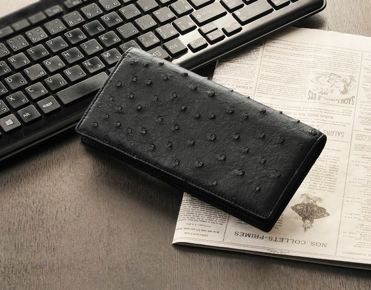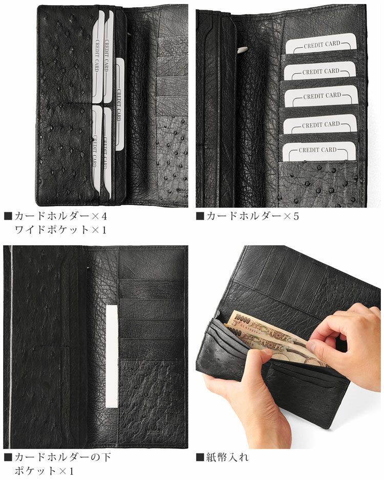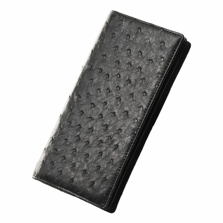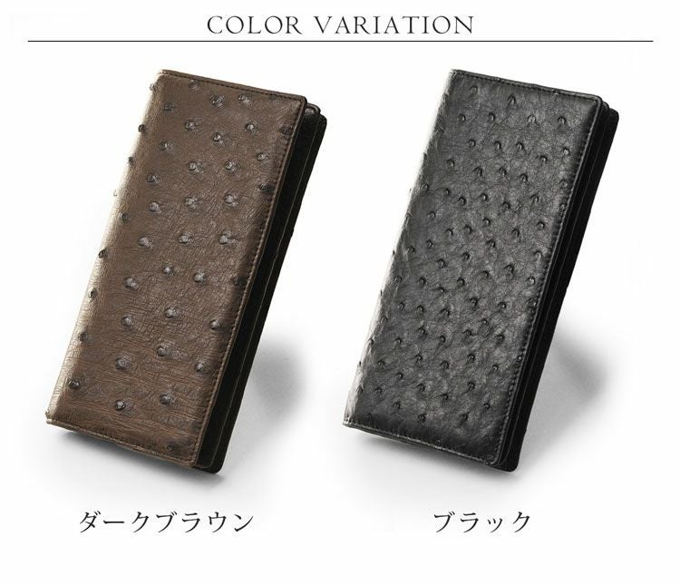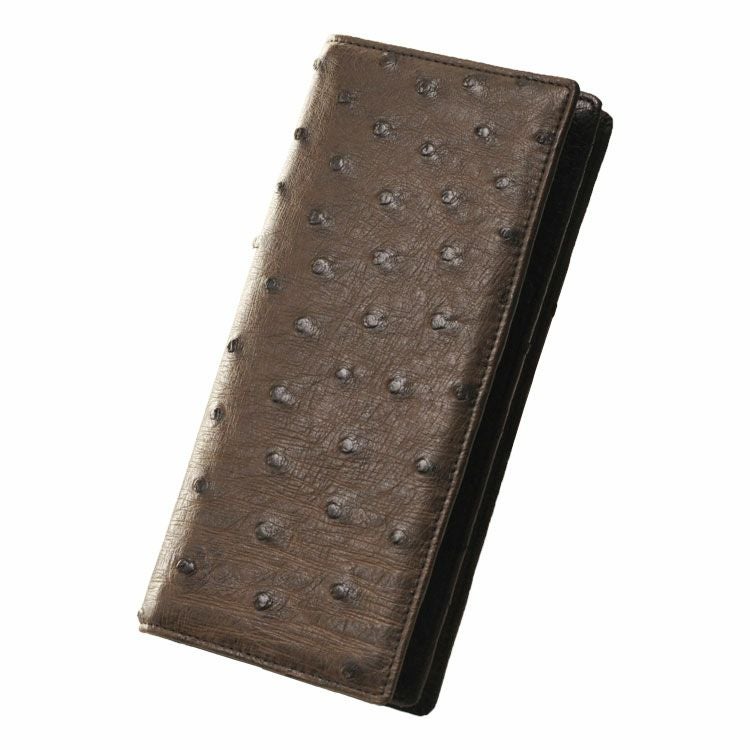 天然皮革 エキゾチックレザー フルポイント オーストリッチ 無双仕立て 長財布 メンズ 財布 革 ダークブラウン ブラック メンズ財布 ファスナー付き ファスナーなし カード収納9枚 誕生日 プレゼント ギフト 普段使い 父 ギフト