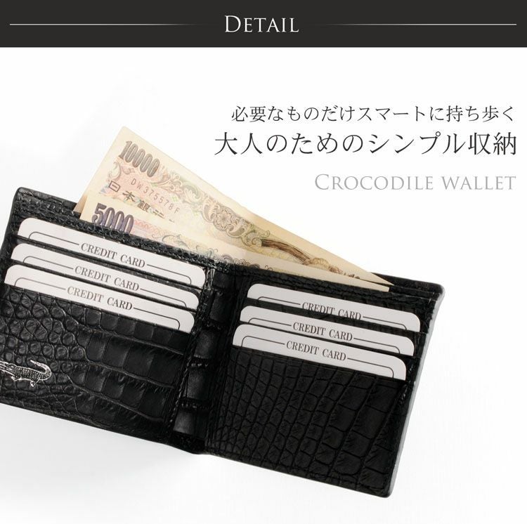 お札やカードをスマートに持ち歩く、クロコダイルの折り財布です。
