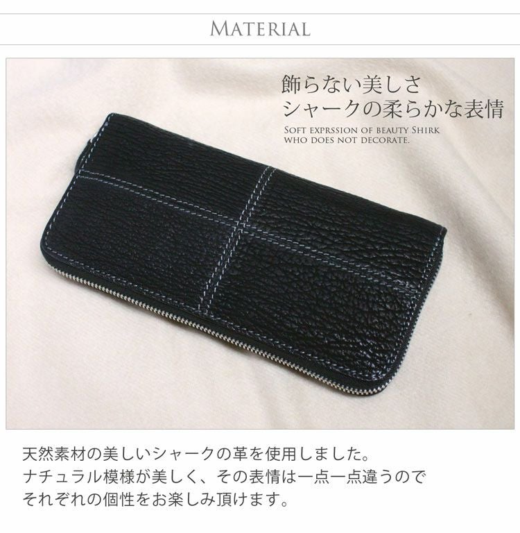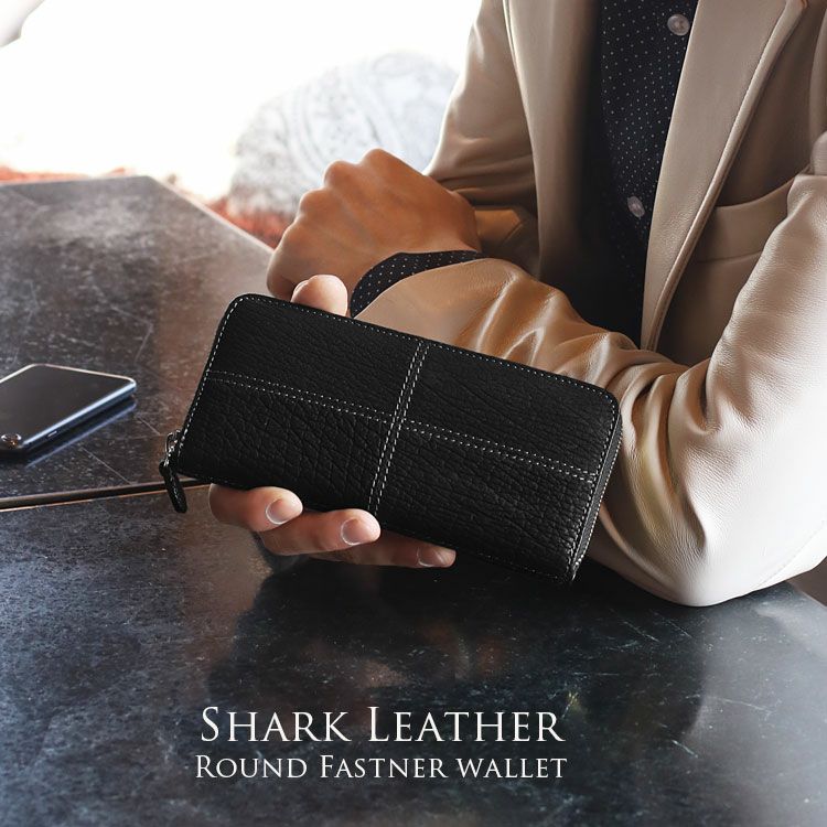 独特な天然の模様が美しいシャークを使用したラウンドファスナー長財布。