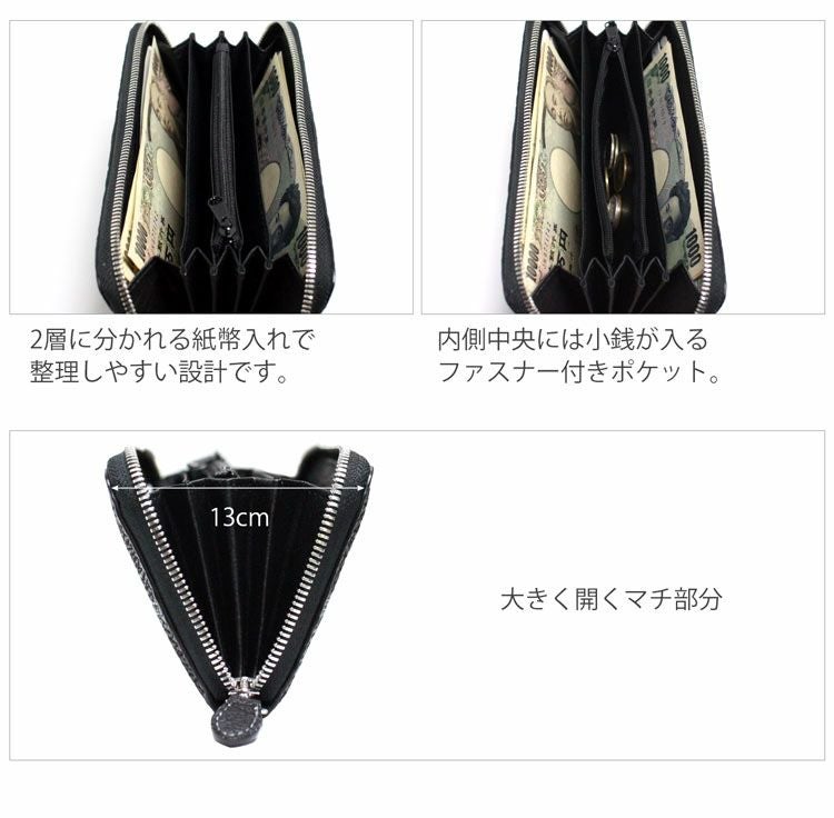 使いやすいラウンドファスナータイプで、カジュアルにはもちろん、フォーマルシーンなどでも活躍します。