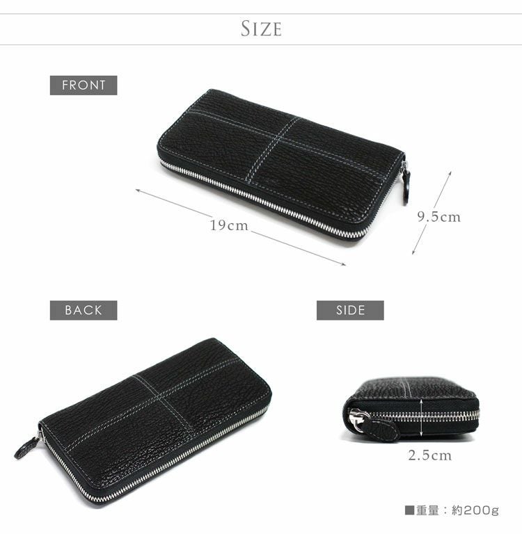 商品名:シャーク メンズ 長財布 ステッチ入り ラウンド ファスナー
